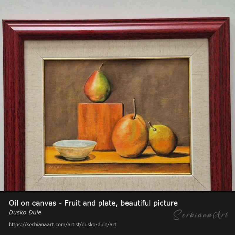 Oil on canvas - Fruit and plate, beautiful picture