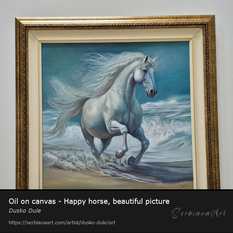Oil on canvas - Happy horse, beautiful picture