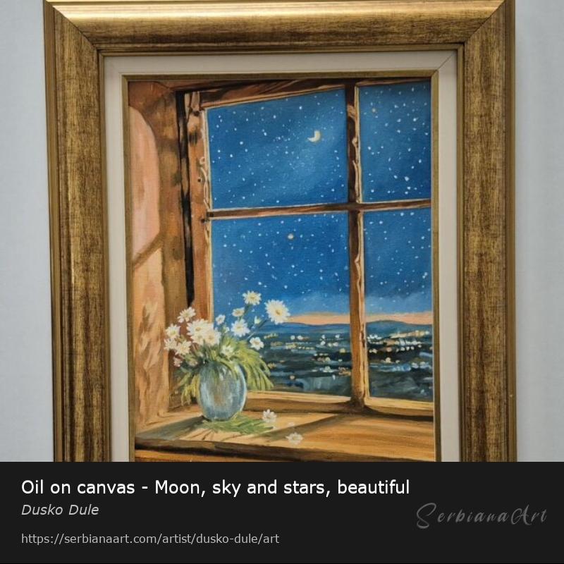 Oil on canvas - Moon, sky and stars, beautiful