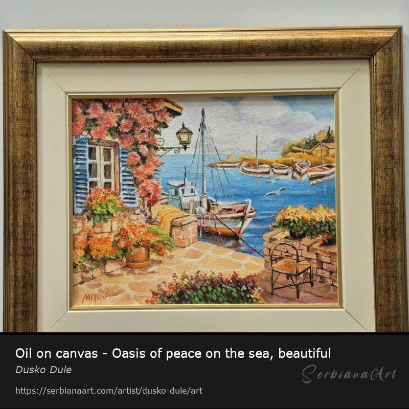 Oil on canvas - Oasis of peace on the sea, beautiful