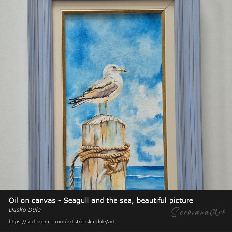 Oil on canvas - Seagull and the sea, beautiful picture