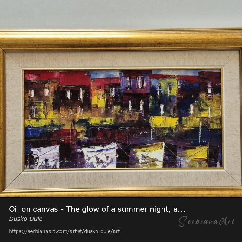 Oil on canvas - The glow of a summer night, a beautiful picture