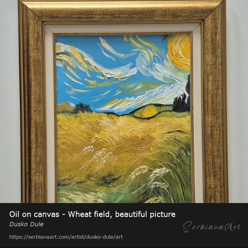 Oil on canvas - Wheat field, beautiful picture