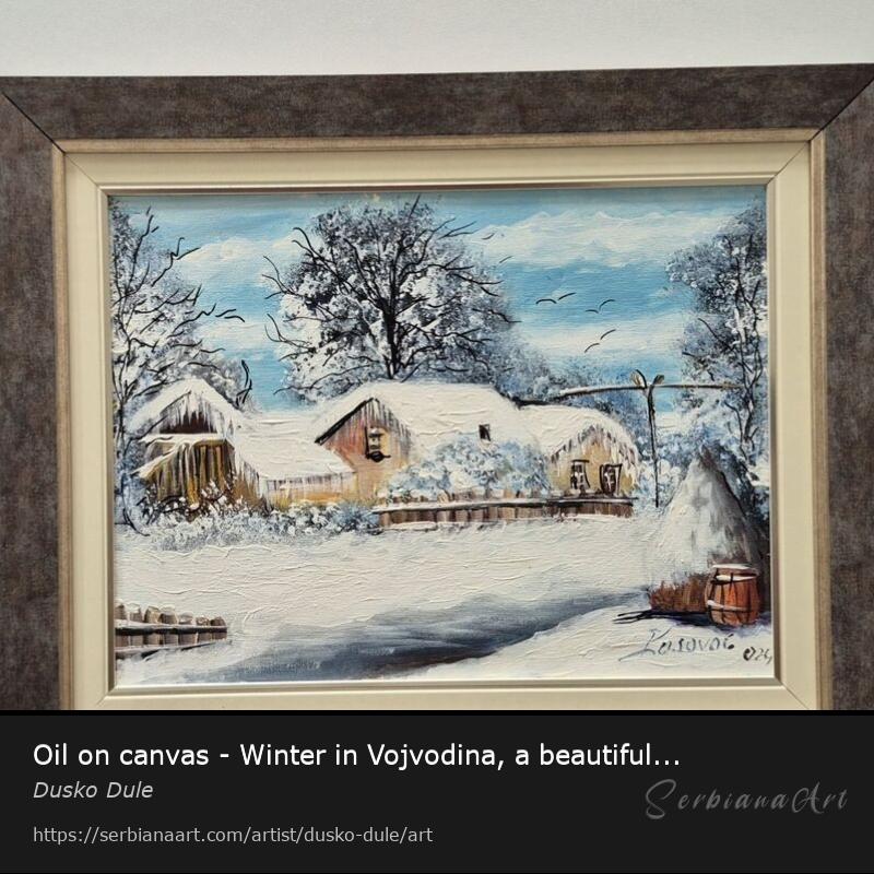 Oil on canvas - Winter in Vojvodina, a beautiful picture