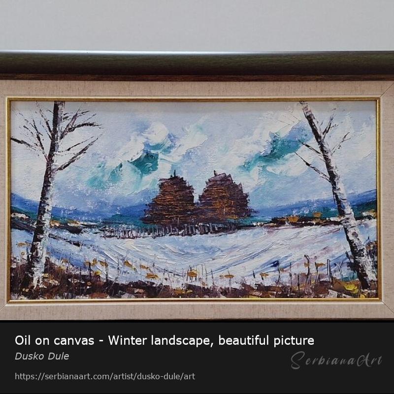 Oil on canvas - Winter landscape, beautiful picture