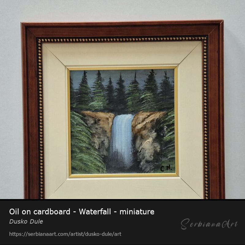 Oil on cardboard - Waterfall - miniature