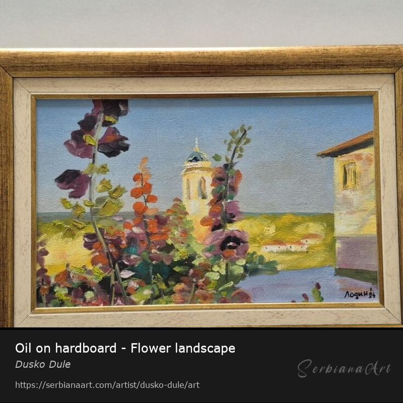 Oil on hardboard - Flower landscape