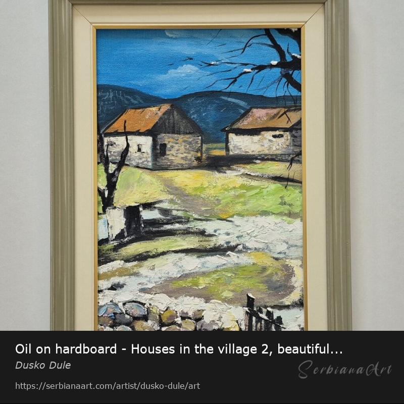 Oil on hardboard - Houses in the village 2, beautiful painting