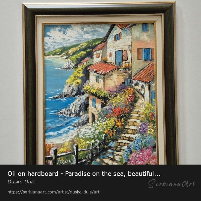 Oil on hardboard - Paradise on the sea, beautiful painting