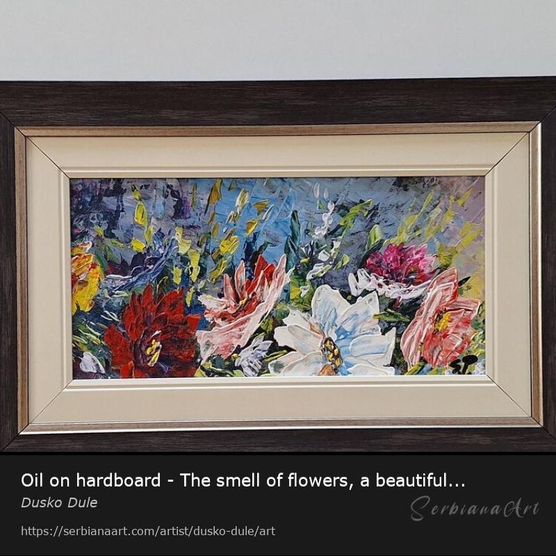 Oil on hardboard - The smell of flowers, a beautiful picture