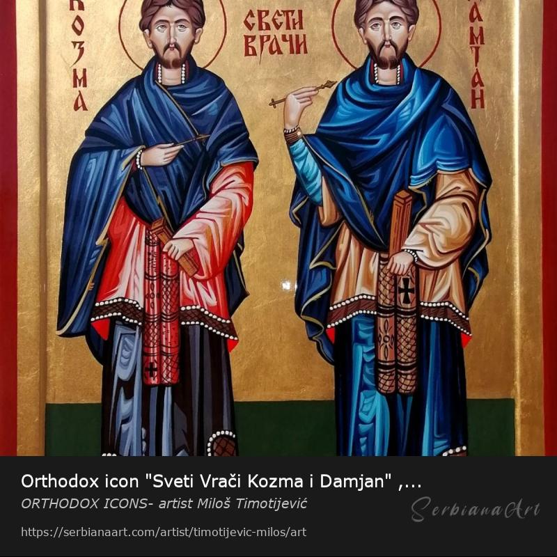 Orthodox icon "Sveti Vrači Kozma i Damjan" , dimensions 50x40 cm