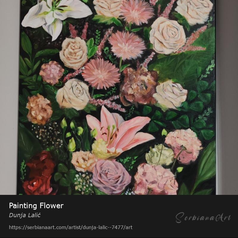 This exquisite floral painting presents a lush tapestry of blossoms, with each petal meticulously rendered to convey the delicate beauty of nature. A harmonious blend of soft pinks, creamy whites, and vibrant reds creates a captivating visual symphony, set against a backdrop of rich green foliage. The intricate brushwork brings each flower to life, offering a sense of depth and texture that draws the eye. Perfect for adding a touch of elegance and serenity to any space, this artwork is a timeless addition to your collection.