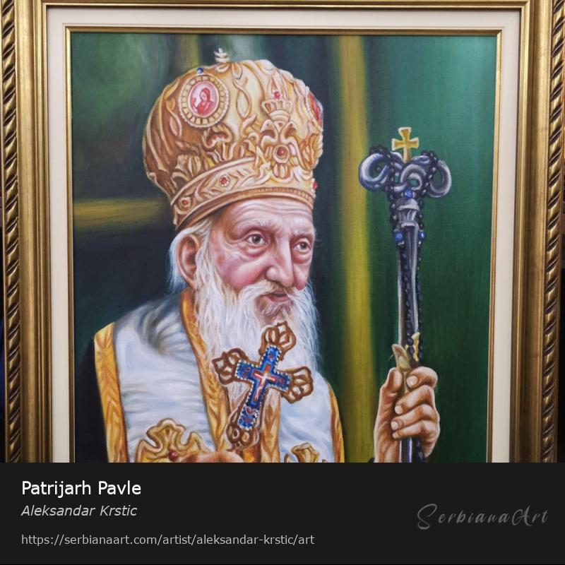 Na prodaju portert Patrijarha Pavla u tehnici ulje na platnu 70x60cm uramljena.