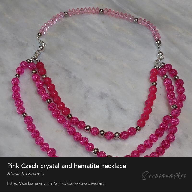 Handmade necklace of Czech crystal, hematite, and zircons.