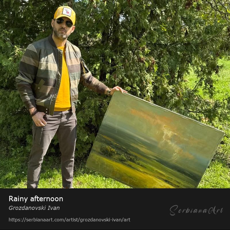 " Rainy afternoon ".....Painted with expressive moves.......with pallet knife and with a brush.....W 100 x H 80 cm ,( W 97 x H 77 cm ,when the canvas is stretched on the wooden frame )....