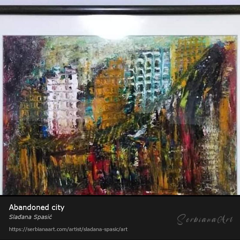 Abandoned city, subconscious memories. Tempera technique on cardboard.