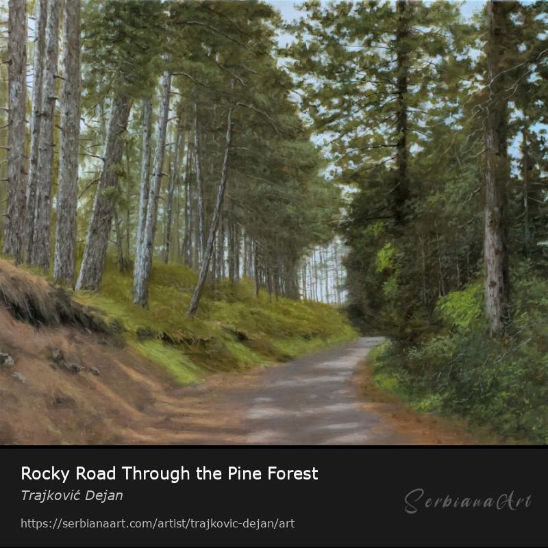 А rocky road through a pine forest to a place known as Uros Rock on Mount Tara in Serbia. I am sure that many nature and landscape lovers will recognize another place from a completely different part of the world, which only says that the language of nature is universal and understandable everywhere. Original artwork painted using highest quality oil colors. Canvas is stretched on wooden bars, ready to hang or framing.