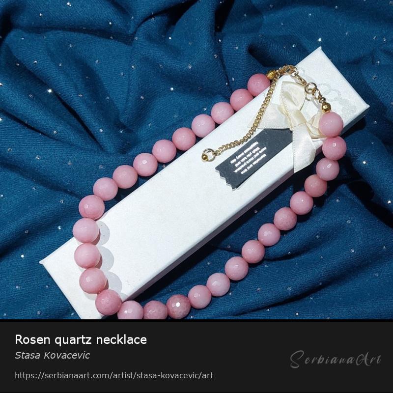 Handmade rosen quartz necklace, and gold-plated stainless steel clasp.