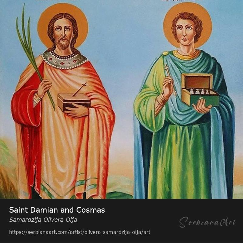 Saint Damian and Cosmas, oil on canvas 50x70cm