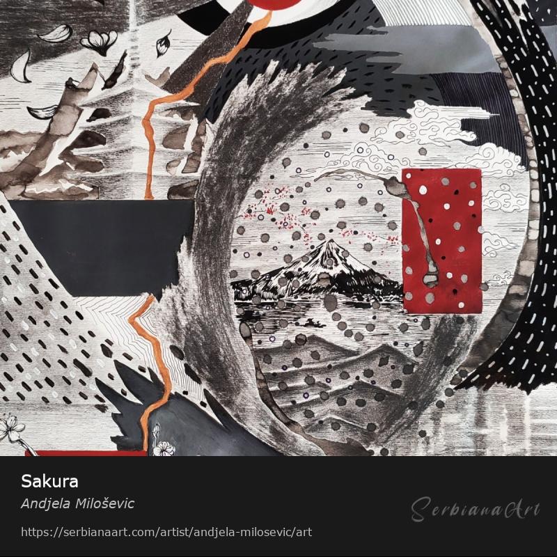 "Sakura" brings recognizable oriental elements to the streams, although the painting is not inspired by any one specific city, location, or eastern idea. Contrasting deep red and striking visuals serve as an eye-catching anchor, while navigation throughout the story, and unique definition of individual elements, is left to the viewer.