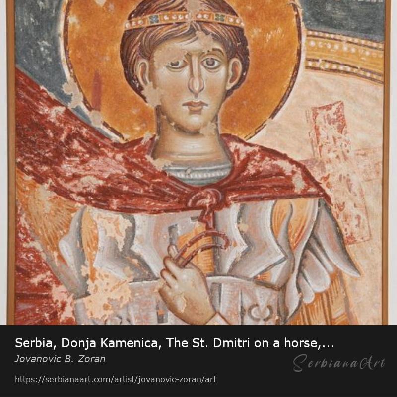 Serbia, Church in Donja Kamenica ( aboyt 1330.), The St.Dimitri on a horse, detail, copy of the fresco. This copy of the fresco is in the author`s possession, and the deadline for making the same is negotiable (about 25 days).Share and promote this artwork