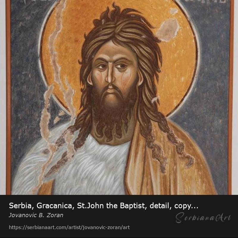 Serbia, Monastery Gracanica (1318-1320.) St.John the Baptist, detail, copy of the fresco. This copy of the fresco is in the author`s possession, and the deadline for making the same is negotiable (about 20-25 days).Share and promote this artwork