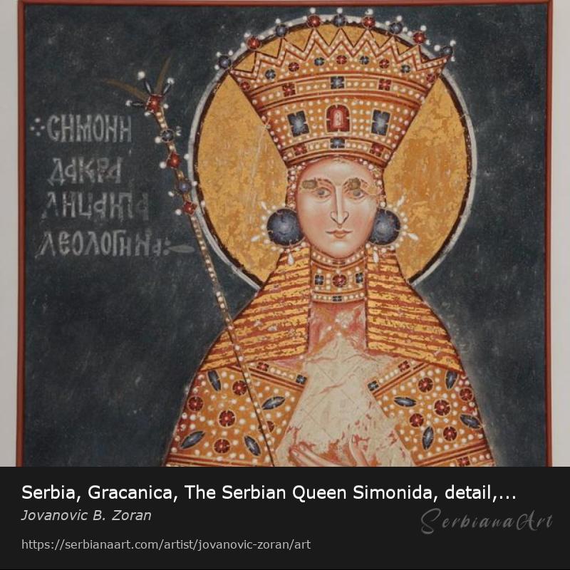 Serbia, Monastery Gracanica (1318-1320.), The Serbian Queen Simonida ( wife of Serbian King Milutin, and daughter of byzantine Emperor Andronikos II ), copy of the fresco. This copy of the fresco is in the author`s possession, and the deadline for making the same is negotiable (about 25-30 days).