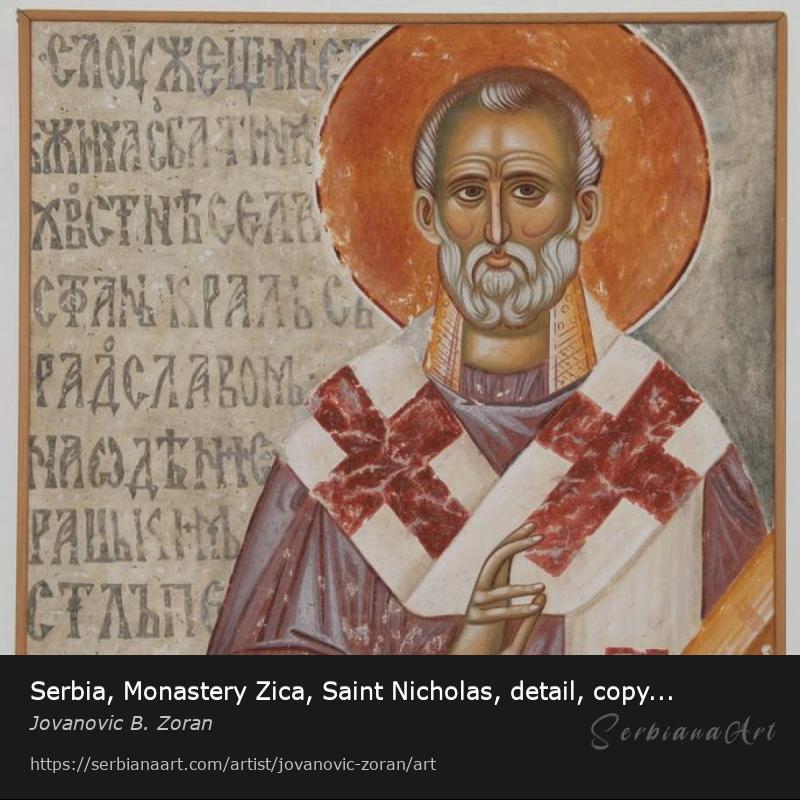 Serbia, Monastery Zica, Saint Nicholas, detail, copy of the fresco