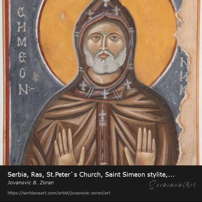 Serbia, Ras, St.Peter`s Church ( aboyt 1260.), The Saint Simeon stylite, copy of the fresco. Picture is currently for sale.Share and promote this artwork