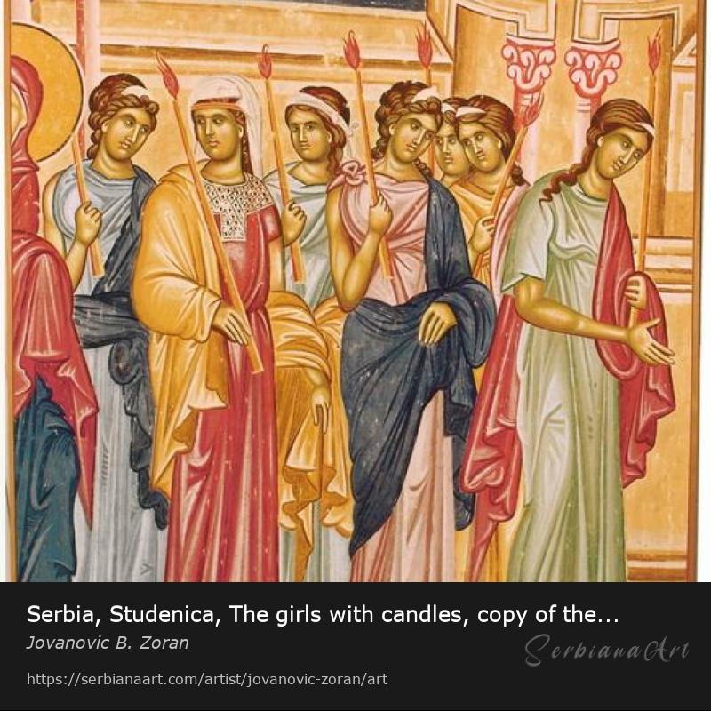 Serbia, Studenica, The girls with candles, copy of the fresco