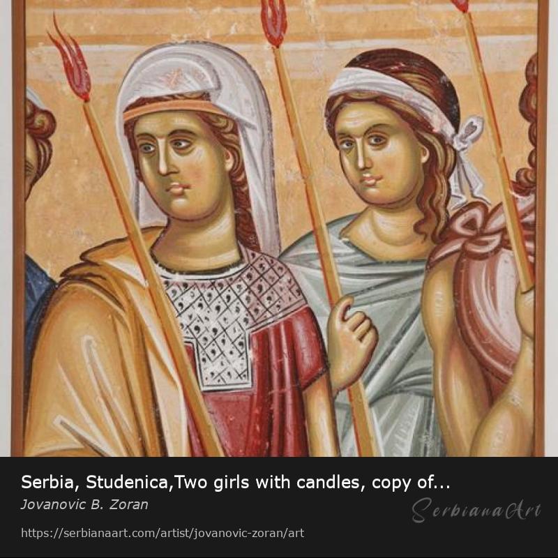Serbia, Monastery Studenica, Kraljeva crkva (1314.), composition - Presentation of the Virgin, detail: Two girls with candles, copy of the fresco. This copy of the fresco is in the author`s possession, and the deadline for making the same is negotiable (about 30 days).