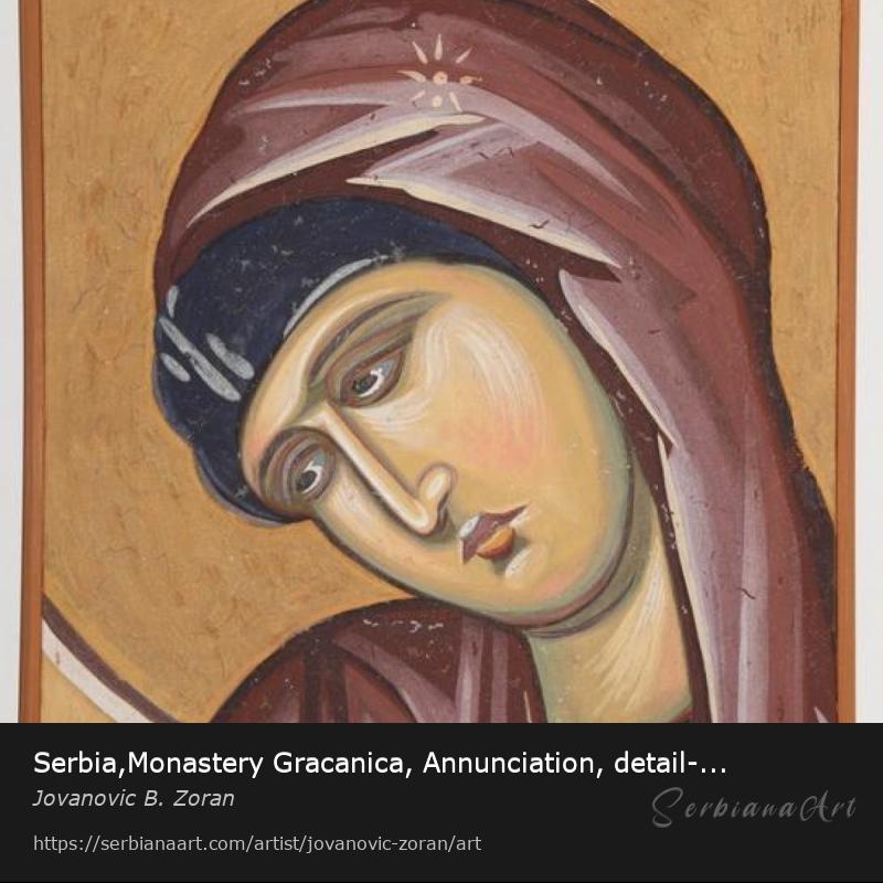 Serbia,Monastery Gracanica, Annunciation, detail- Virgin Mary, copy of the fresc