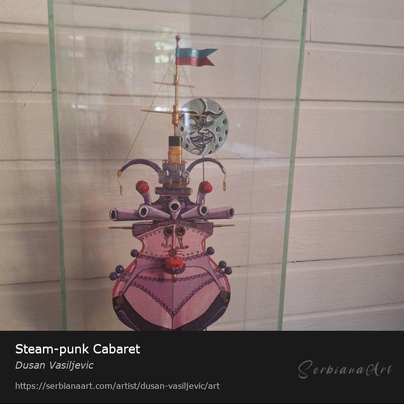 The boat is made of combined materials (wood, metal) painted with acrylic paints. Complete handmade starting from the blueprint to the model.