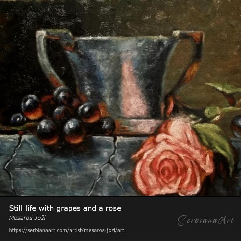 Still life with grapes and a rose