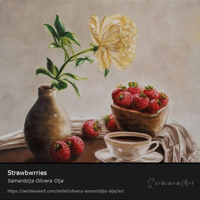 Strawbwrries, oil on canvas 30x30cm