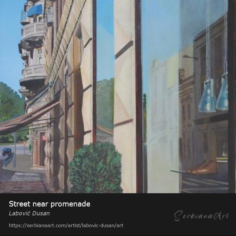 Slika dela Uzun Mirkove ulice gde su prikazani izlozi prodavnica, fasade, tri bloka poduzno I ulaz u šetaliste Beogradske tvrdjave. Uz kupljenu sliku isporucuje se gratis specijalna drvena kutija, namenjena za slučaj odlaganja slike, u kojoj je slika zaštićena od atmosferskih uticaja.