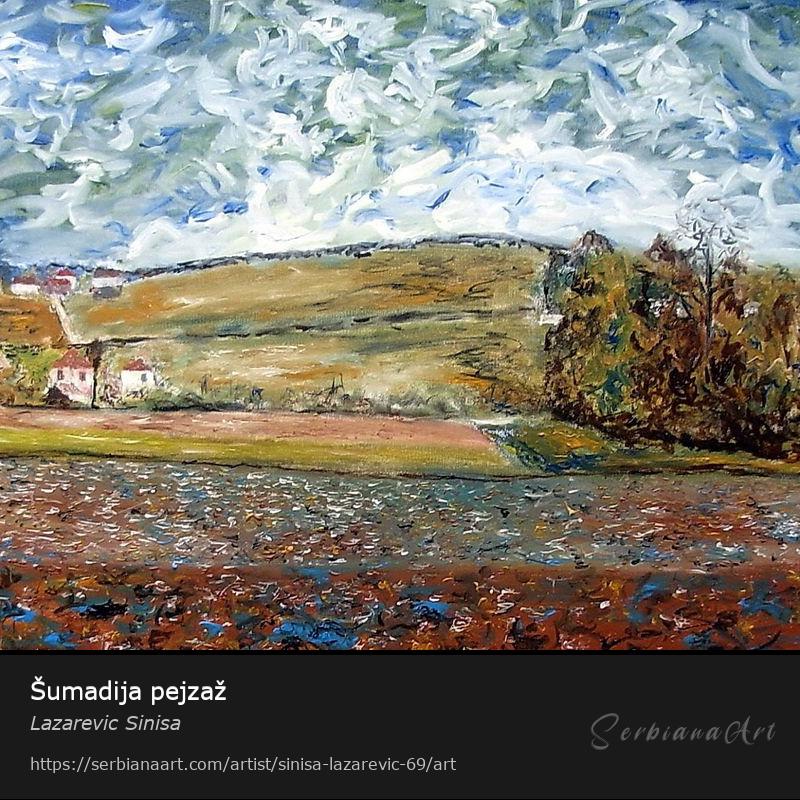 This beautiful painting shows the incredible landscape of Šumadija, which is one of the most beautiful and peaceful areas in Serbia. Oil on canvas shows the perfection of nature, which can be seen in every detail of the painting. Original painting with signature