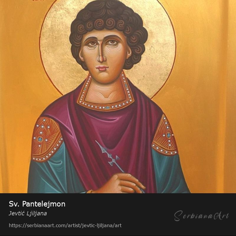 Sv. Pantelejmon, 26 x 36cm, jajcana tempera na lipovoj dasci, zlatni listici 22,5 karata.Share and promote this artwork