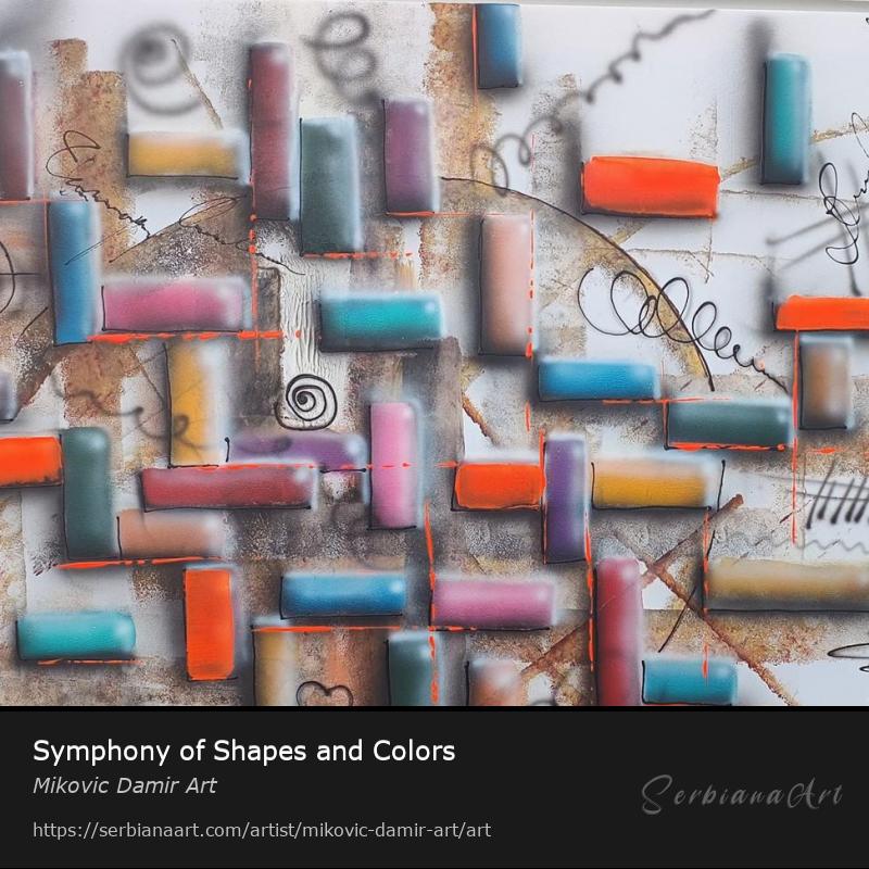 This abstract artwork is a vibrant composition that explores the complex relationships between form and color, creating a visual spectacle that is both calming and dynamic. Made with a combination of acrylic and oil on canvas, the painting uses a variety of techniques such as spatula, roller and airbrush, adding depth and texture to each element of the composition.