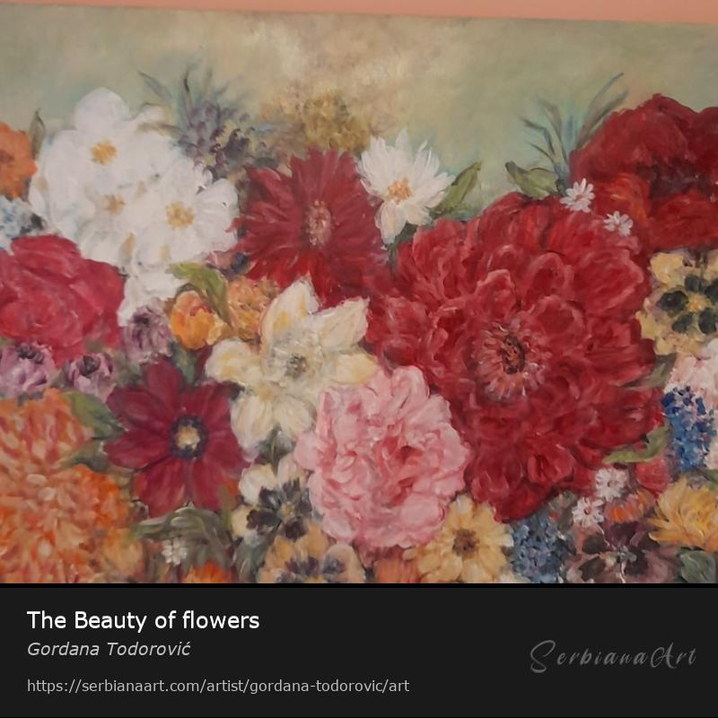 Inspiration from the beauty of flowers in large dimensions and fits into any space.Original painting on canvas 4.5 cm.wide ao a frame is unnecessary.It is a combined tehnigue.Im:gordana .todorovic47@gmail.com.
