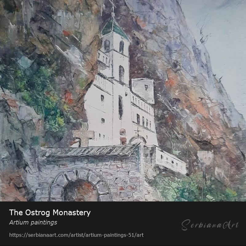 The painting ``Ostrog Monastery`` is a depiction of one of the most visited monasteries located along the almost vertical cliff of the mountain.Share and promote this artwork