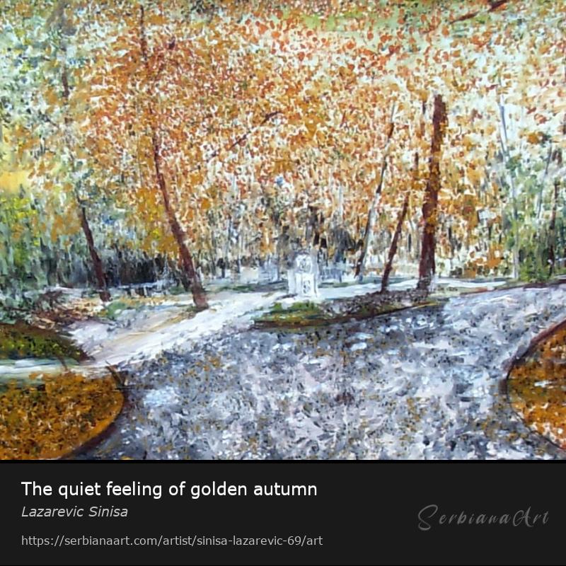 "The quiet feeling of golden autumn" is a painting that conveys a strong feeling of nature that is slowly changing. Soft, almost smeared colors create a feeling of warmth and relaxation in the viewer. The picture shows a forest that is getting ready for the arrival of winter, but is still in the full splendor of golden autumn. Every branch, every leaf, every shadow is perfectly depicted on the canvas. Original painting with signature