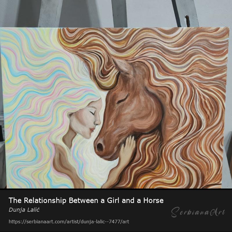 This original art painting depicts a tender and emotional moment of deep connection between a girl and a horse. Fluid lines and wavy hair in pastel and warm tones create a sense of harmony, tenderness and spiritual connection with nature. The horse, a symbol of strength and freedom, and the woman, the embodiment of grace and intuition, are combined into a single whole that radiates peace and love.