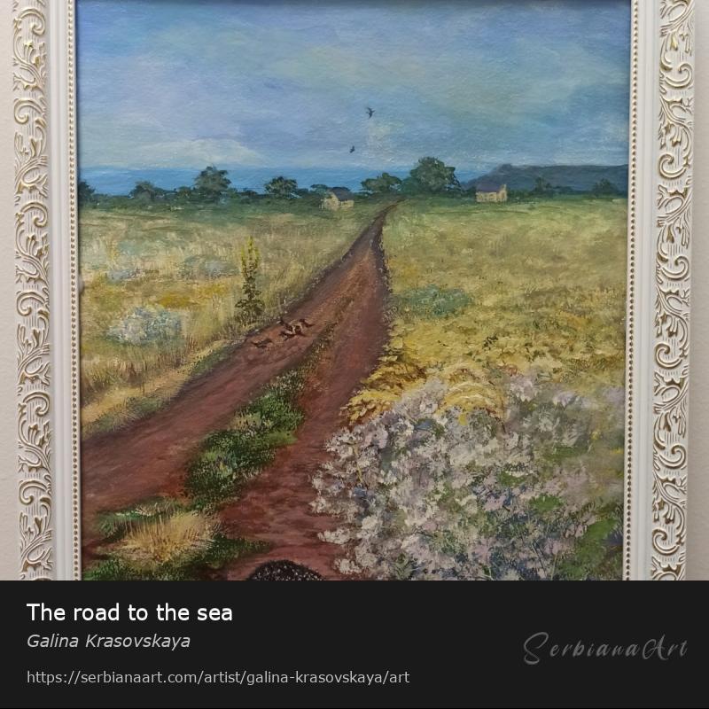 The painting depicts a view from my childhood: the road to the sea.