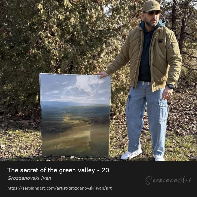 " The secret of the green valley 20.....Painted with expressive moves.......with pallet knife and with a brush.....W 80 x H 100 cm ,( W 77 x H 97 cm ,when the canvas is stretched on the wooden frame )....
