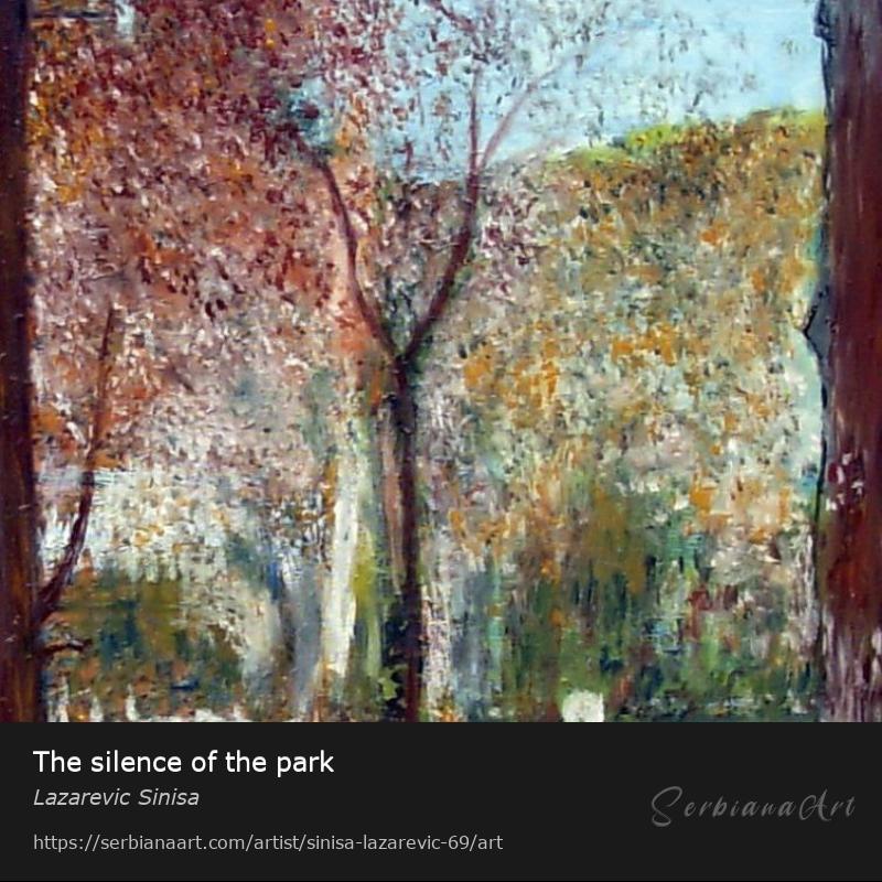 This painting, made with oil on canvas (50x40 cm), shows the autumn landscape of Bukovica spa, where the sunlight gently passes through the treetops, creating a play of shadows on the path covered with leaves. Warm ocher and orange tones blend with the cold shades of the sky and treetops, bringing a sense of peace and nostalgia. Inspired by the beauty of this place, I wanted to convey its autumn silence and harmony of colors.