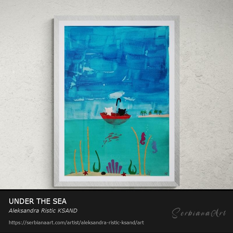 "Under the Sea" invites you into a magical journey of exploration and wonder. After the rain, a black and a white cat uses an umbrella as their boat, gliding gracefully while discovering the vibrant world above and below the surface. The surface is a thin line between these two worlds, amazing!