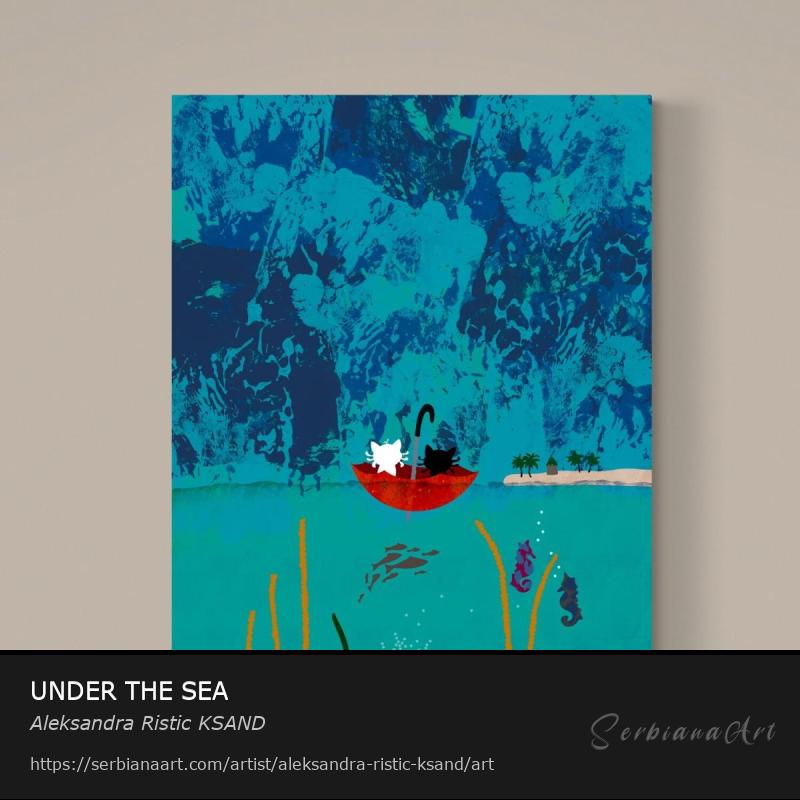 "Under the Sea" invites you into a magical journey of exploration and wonder. After the rain, a black and a white cat uses an umbrella as their boat, gliding gracefully while discovering the vibrant world above and below the surface. The surface is a thin line between these two worlds, amazing!