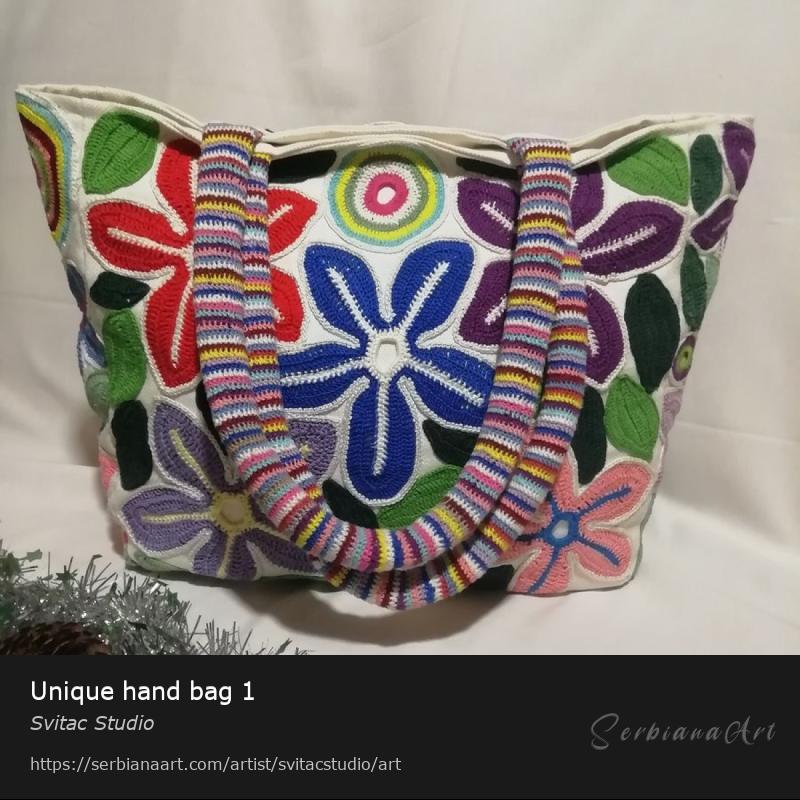 Handmade, unique cotton bag with crocheted flowers and leaves. The bag has a lining, an inner pocket and zipper closure. Colour: whiteShare and promote this artwork
