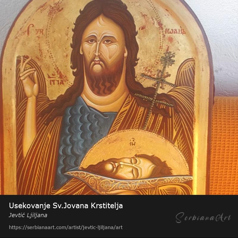 Usekovanje Sv.Jovana Krstitelja, 40 x 50cm, jajcana tempera na lipovoj dasci, zlatni listici 22,5 karata.Share and promote this artwork